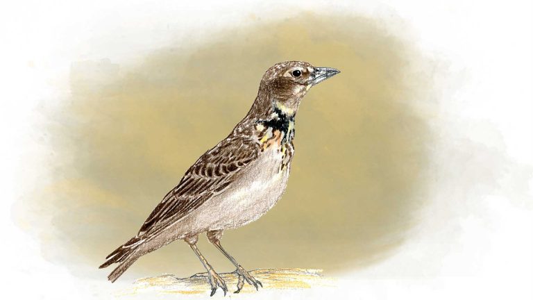 Ave de llanuras y estepas de color marrón muy discretas y con una línea en el cuello oscura que permite su identificación. Tienen un magnífico canto que la ha condenado durante años a ser capturada y mantenerla en cautiverio. Actualmente eso está prohibido por ley y podemos disfrutar de ellas en libertad en lugares como la falda de ls Muela.